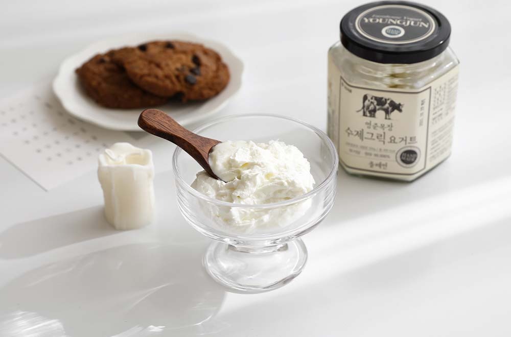 일반 요구르트는 원유를 살균한 후 유산균을 넣어 따스한 온도에서 발효시킨 것을 의미하는데, 이 요구르트의 유청을 삭제해서 꾸덕하게 만든 것이 바로 그릭 요거트이예요.