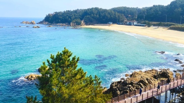 아름다운 바다풍경을 관망하며 시원함도 맘껏 만끽할 수 있어요. 그리고 양양8경에 속하는 죽도정 및 남애항이 길 위로 놓여 한적한 해변 분주한 포구의 대비를 느껴볼 수 있고요. 또한 원포 해변도 지경해변처럼 뒤쪽으로 너끈한 송림이 있으므로 야영을 누리기에도 아주 좋아요. 양양 해파랑길 41코스를 여유롭게 산책 하시다보면 강원도의 베네치아라고 불린다고 할 정도로 근처 경치가 도드라진 남애항도 볼 수 있어요.